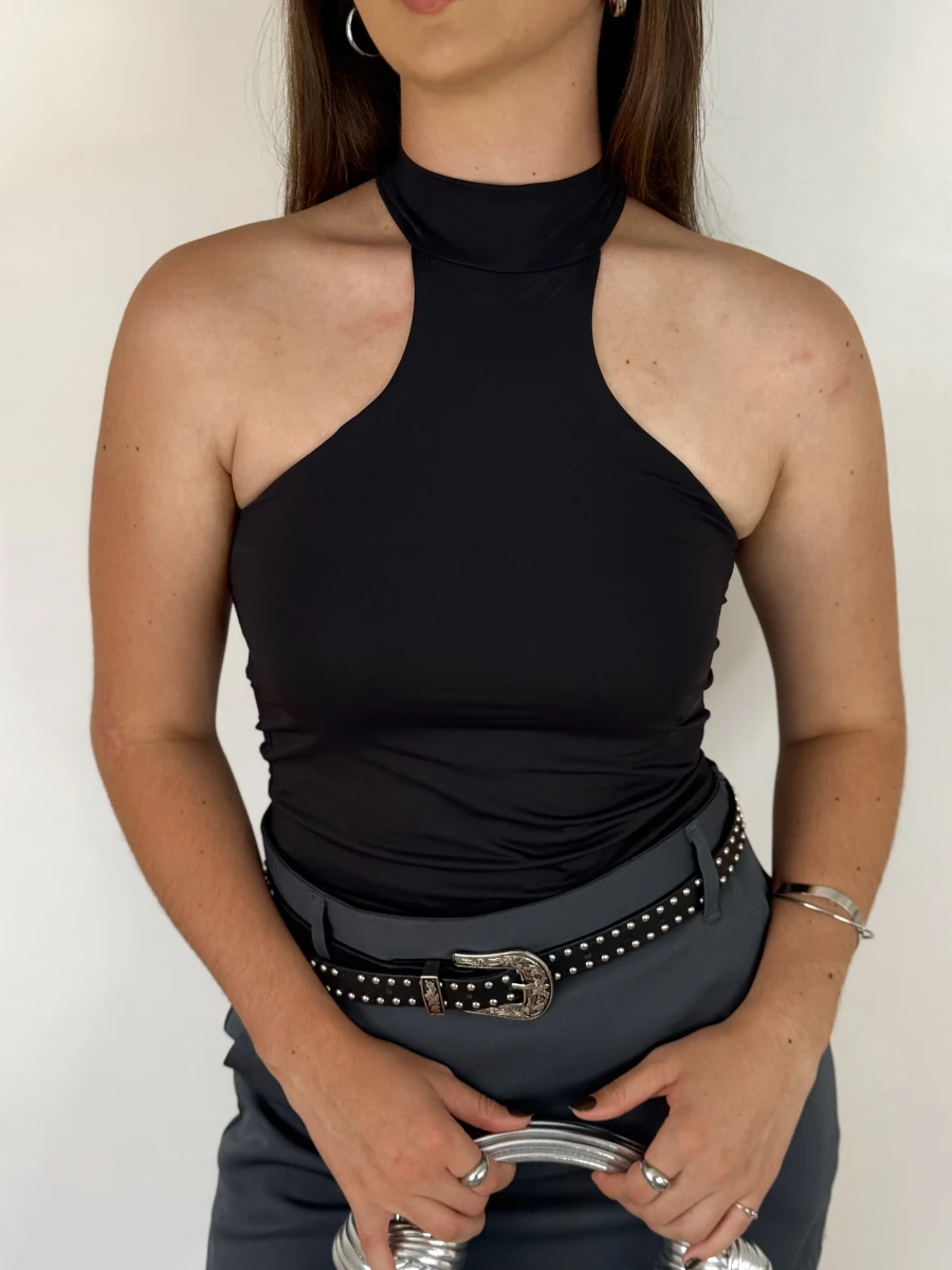 Blusa Gola Alta Cavada Em Poliamida Preto