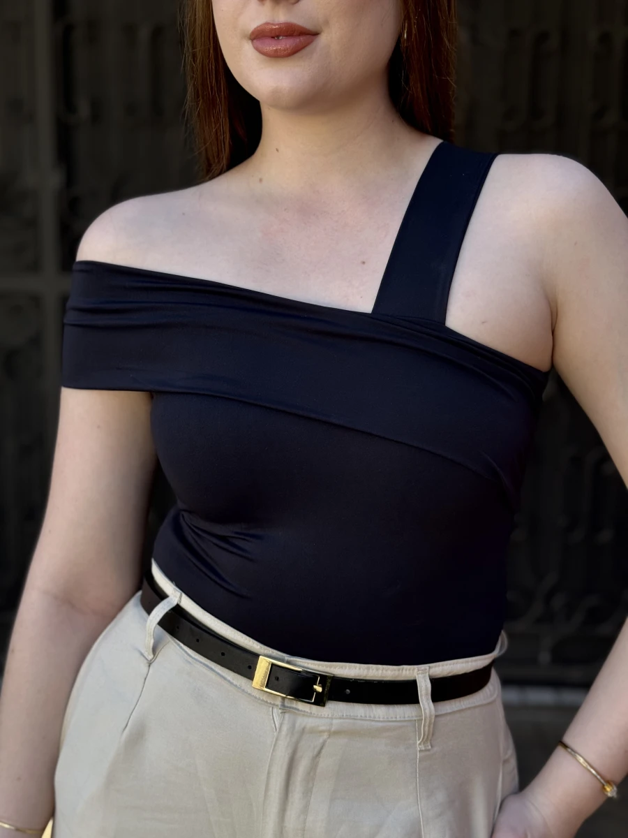 Body confeccionado em tecido de poliamida, oferecendo toque macio e excelente elasticidade. Possui modelagem assimétrica com um ombro só, que traz um visual moderno e elegante.