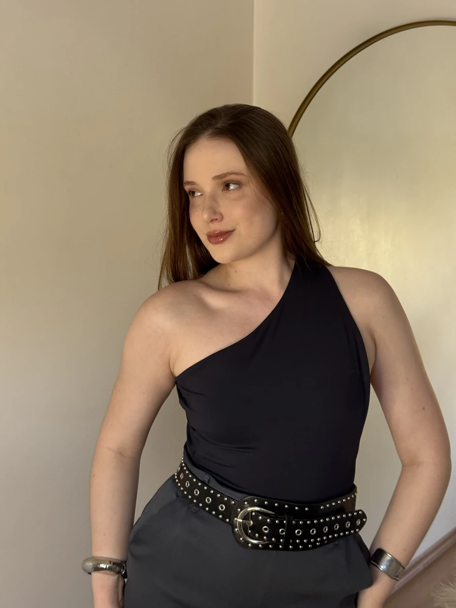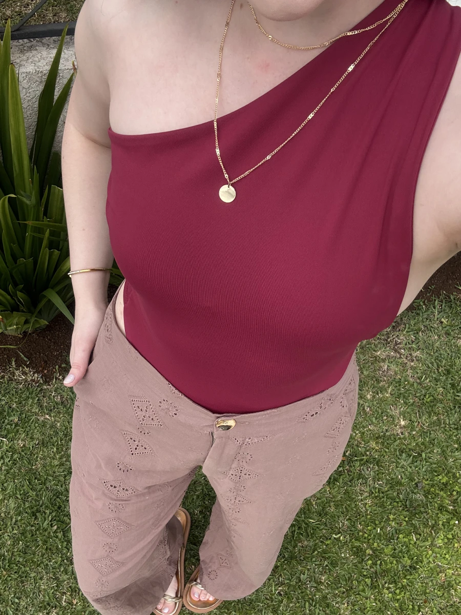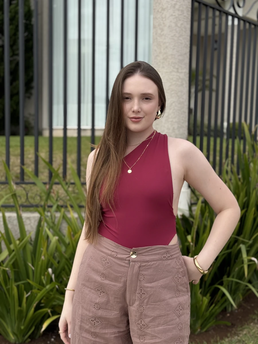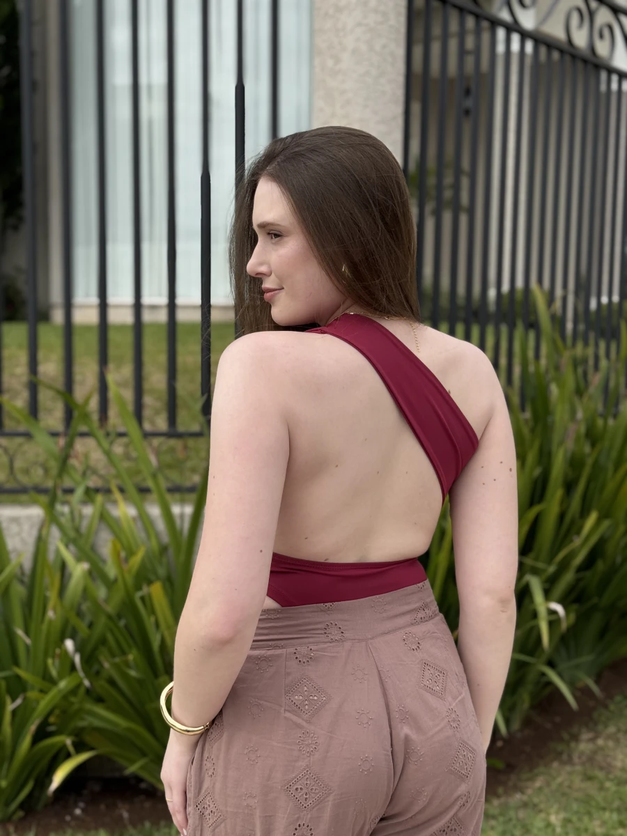 Body feminino em poliamida, tecido leve e confortável que se ajusta ao corpo. Alça única e costas abertas, (Não Possui Bojo)