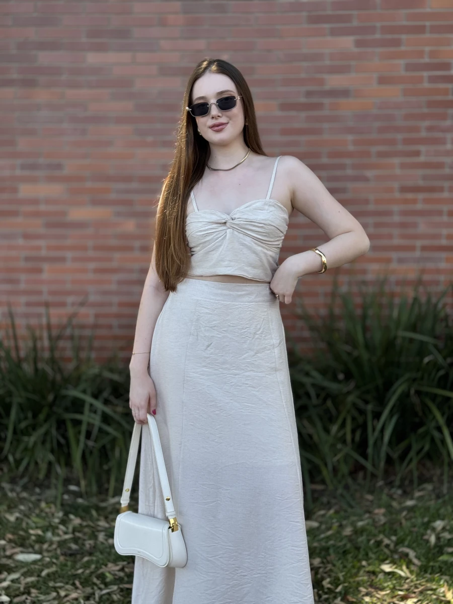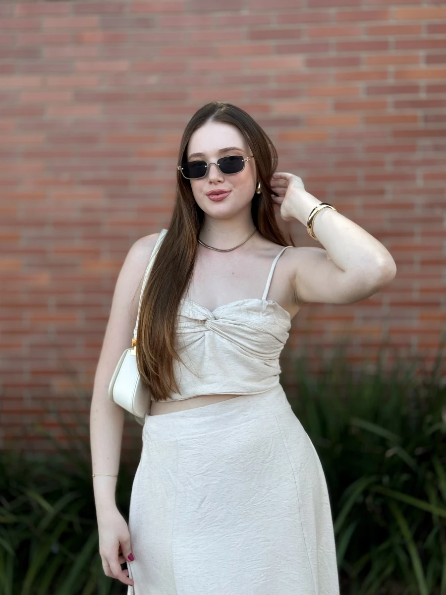 O Cropped Linho é a combinação perfeita de sofisticação e leveza. Confeccionado em tecido plano de linho com poliamida, ele possui busto duplo e franzido, garantindo sustentação e um caimento impecável. As alças reguláveis proporcionam o ajuste ideal, enquanto o fechamento em zíper nas costas traz praticidade e elegância.