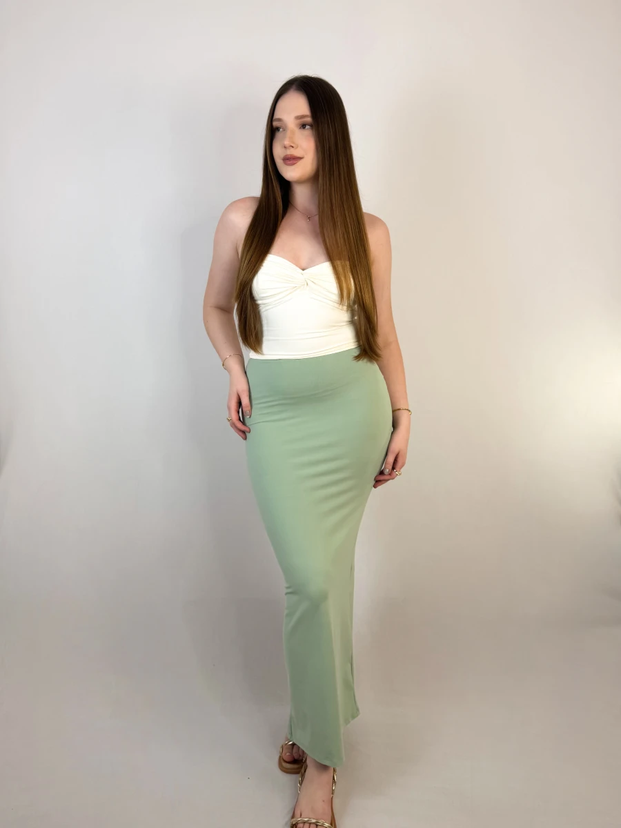 Nossa saia longa em poliamida é a escolha perfeita pra quem busca uma peça minimalista, elegante e coringa, que valoriza a silhueta e traz conforto absoluto no dia a dia.