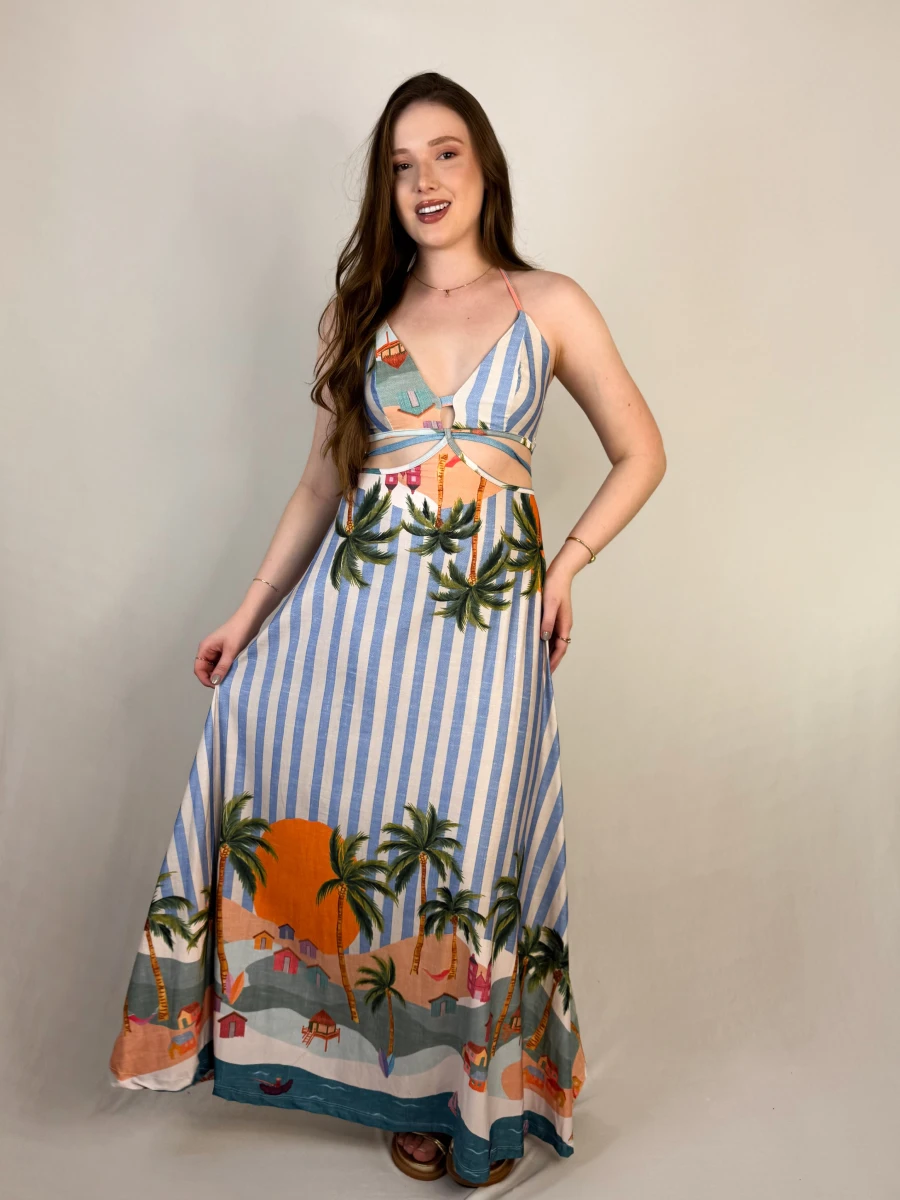 Seja o primeiro a avaliar “Vestido Longo Estampado com Recortes e Amarração”
