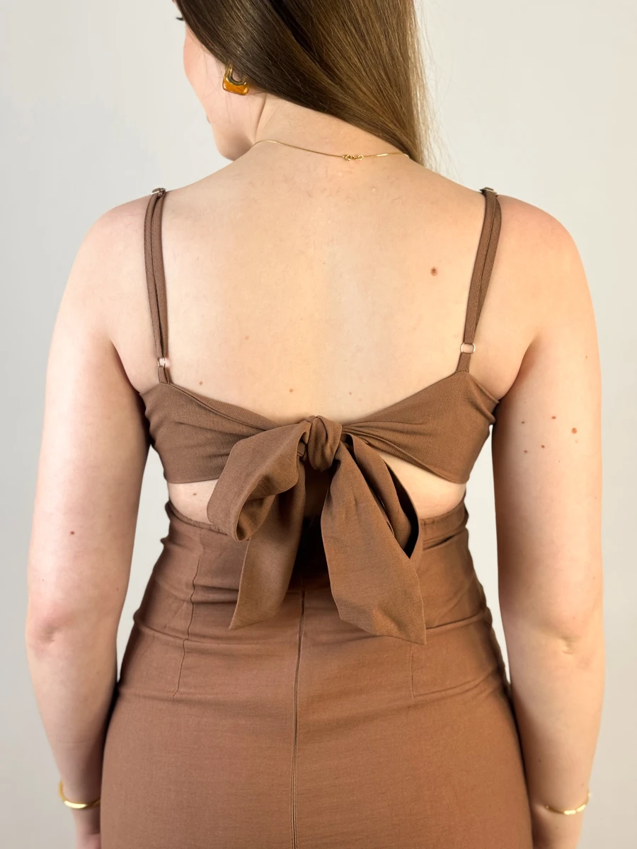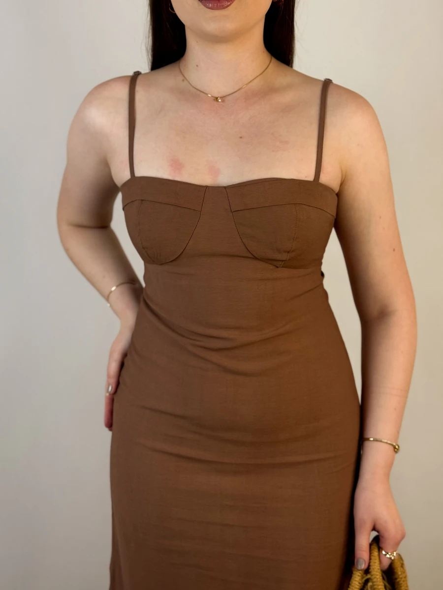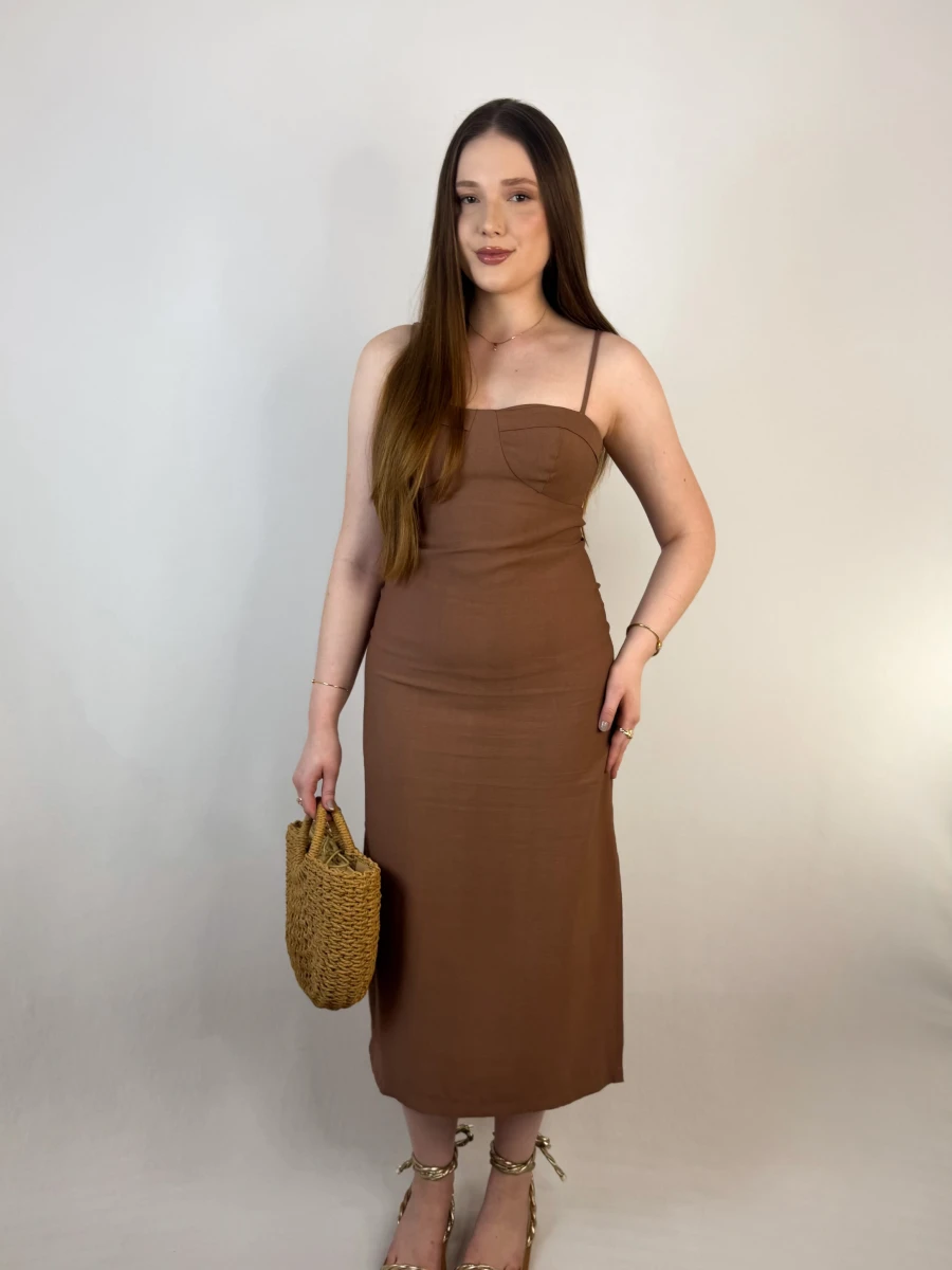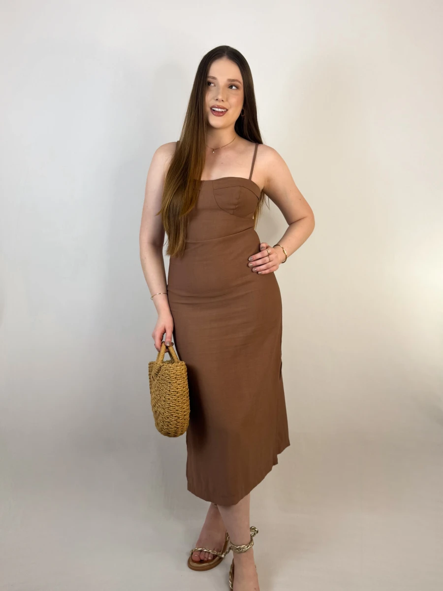 O Vestido Midi Mocha é a escolha perfeita para quem busca sofisticação com um toque moderno. Com alças reguláveis, amarração nas costas e fechamento em zíper invisível, ele modela o corpo com perfeição, garantindo um caimento impecável, com fenda discreta, trazendo charme e movimento ao look. Seu tecido tem de composição: 92% viscose, 8% poliéster.